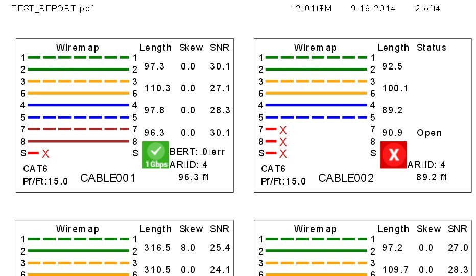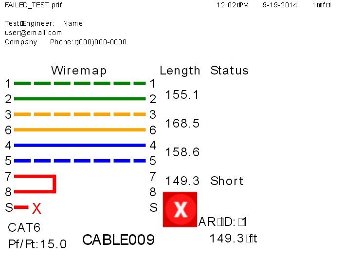 • Improperly terminated cables are clearly displayed on a color graphical wire-mapping display