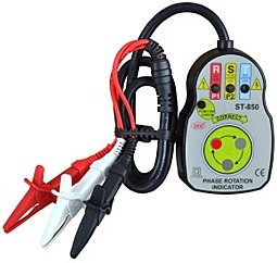 ● Two functions in one unit: open phase and phase sequence detection. ● Lamps let you determine at-a-glance if phase is open. ● Large size alligator clips for easy clipping onto switch-boards terminals. ● Checks a wide range of 3-phase power sources. ● Special test leads length are available on request. ● Push button switch is designed to minimize damage due to negligence.